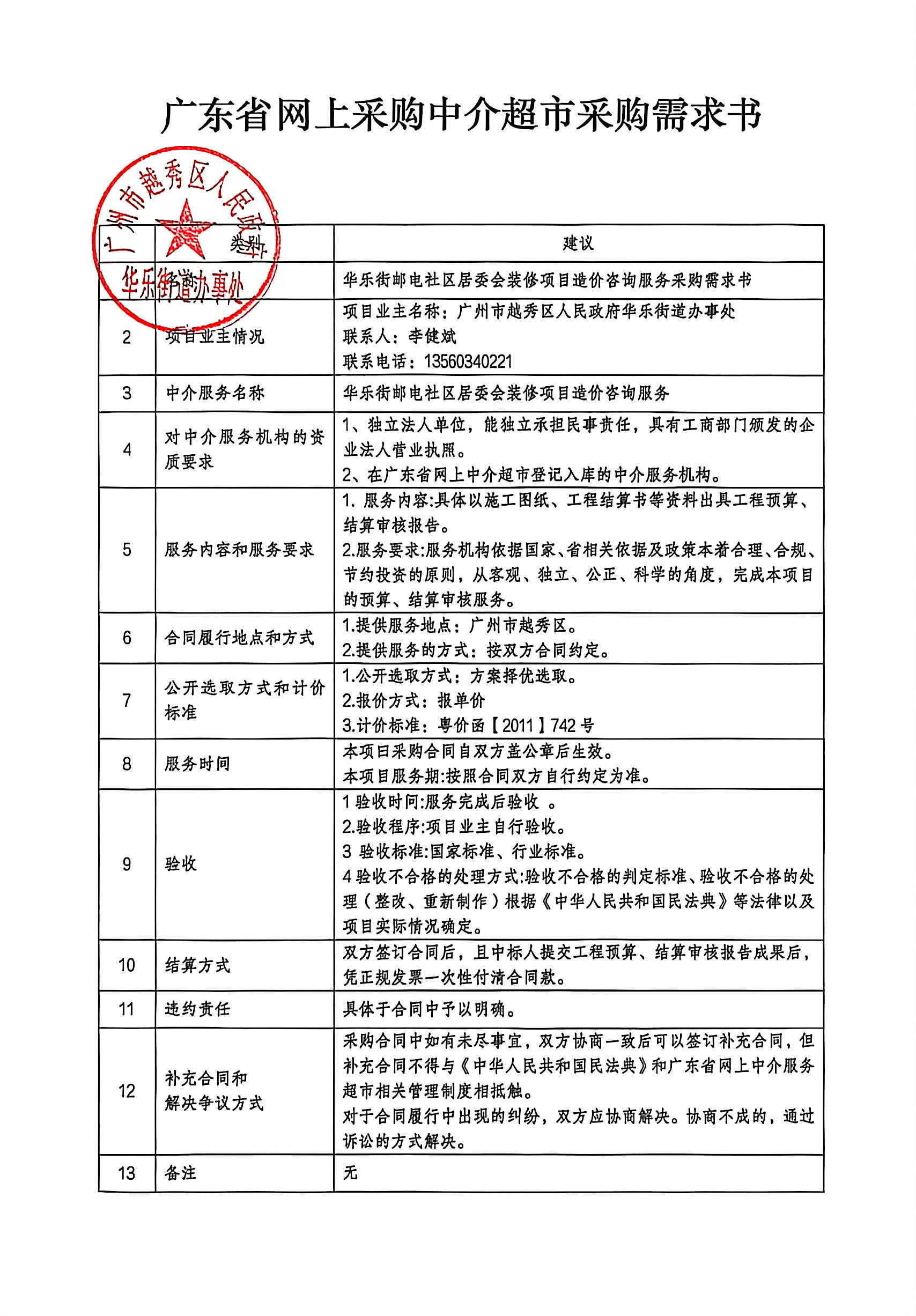 ,在广东省网上中介服务超市为广州市越秀区人民政府华乐街道办事处