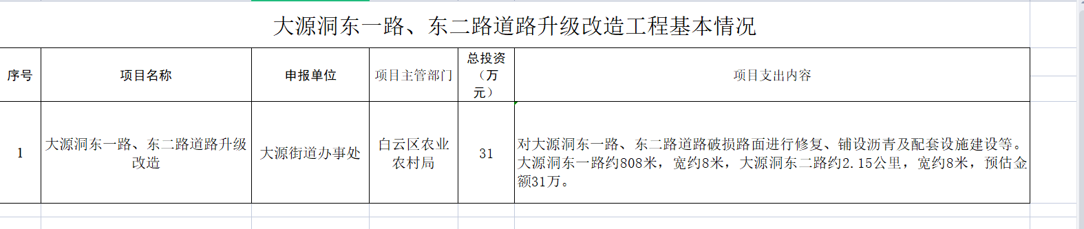 大源洞东一路、东二路道路升级改造工程