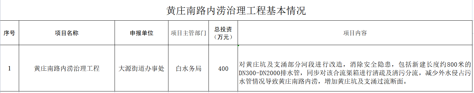 对黄庄南路内涝治理工程采用竞争性磋商方式选取施工单位。对黄庄坑及支涌部分河段进行改造,消除安全隐患,包括新建长度约800米的DN300-DN2000排水管,同步对该合流渠箱进行清疏及清污分流,减少外水侵占污水管情况导致黄庄南路内涝,增加黄庄坑及支涌过流断面。