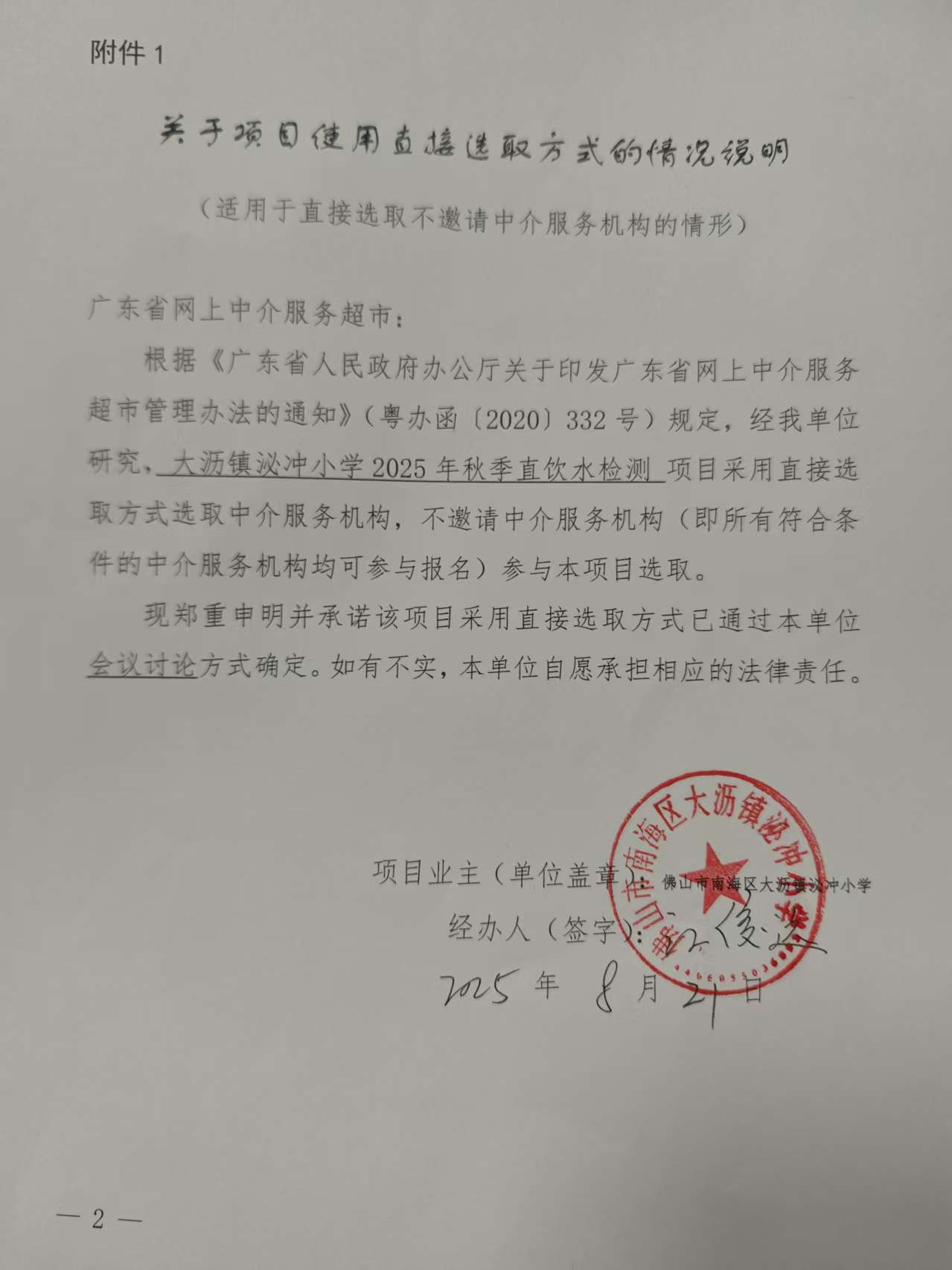 2025-08-26 17:30 ,在广东省网上中介服务超市为佛山市南海区大沥镇泌冲小学 公开选取检验检测服务中介服务机构,现将相关事项公告如下: