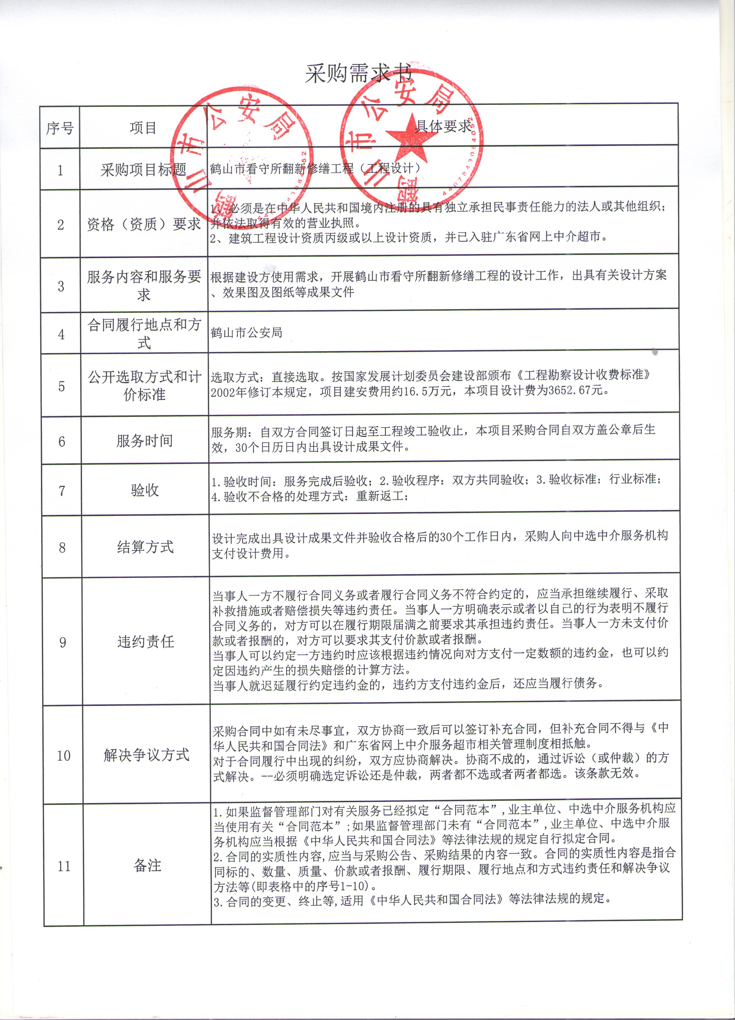 关于为【鹤山市看守所翻新修缮工程(工程设计)】公开选取【工程设计】机构的公告