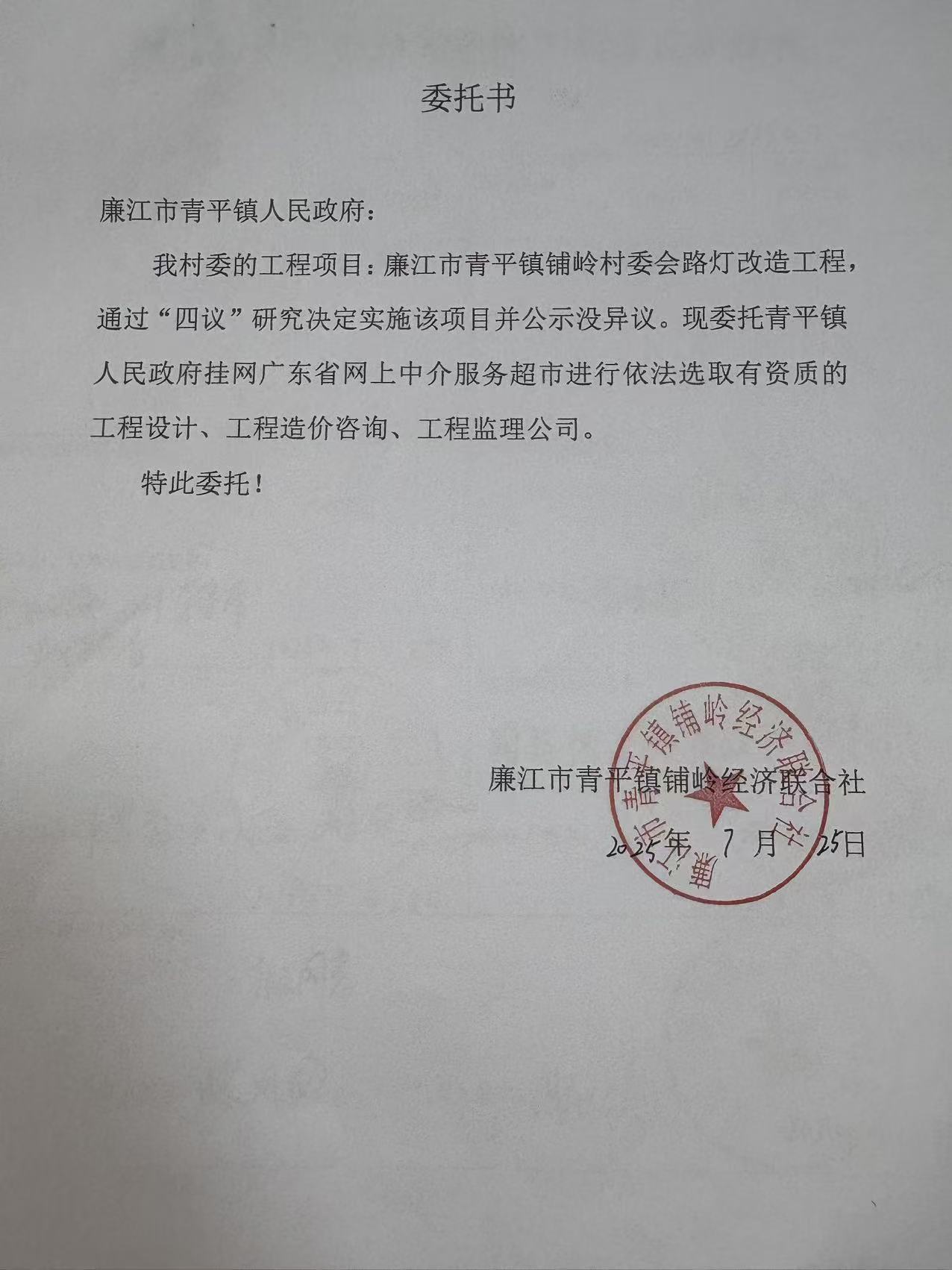 2025-12-15 17:30 ,在广东省网上中介服务超市为廉江市青平镇人民政府 公开选取工程监理中介服务机构,现将相关事项公告如下: