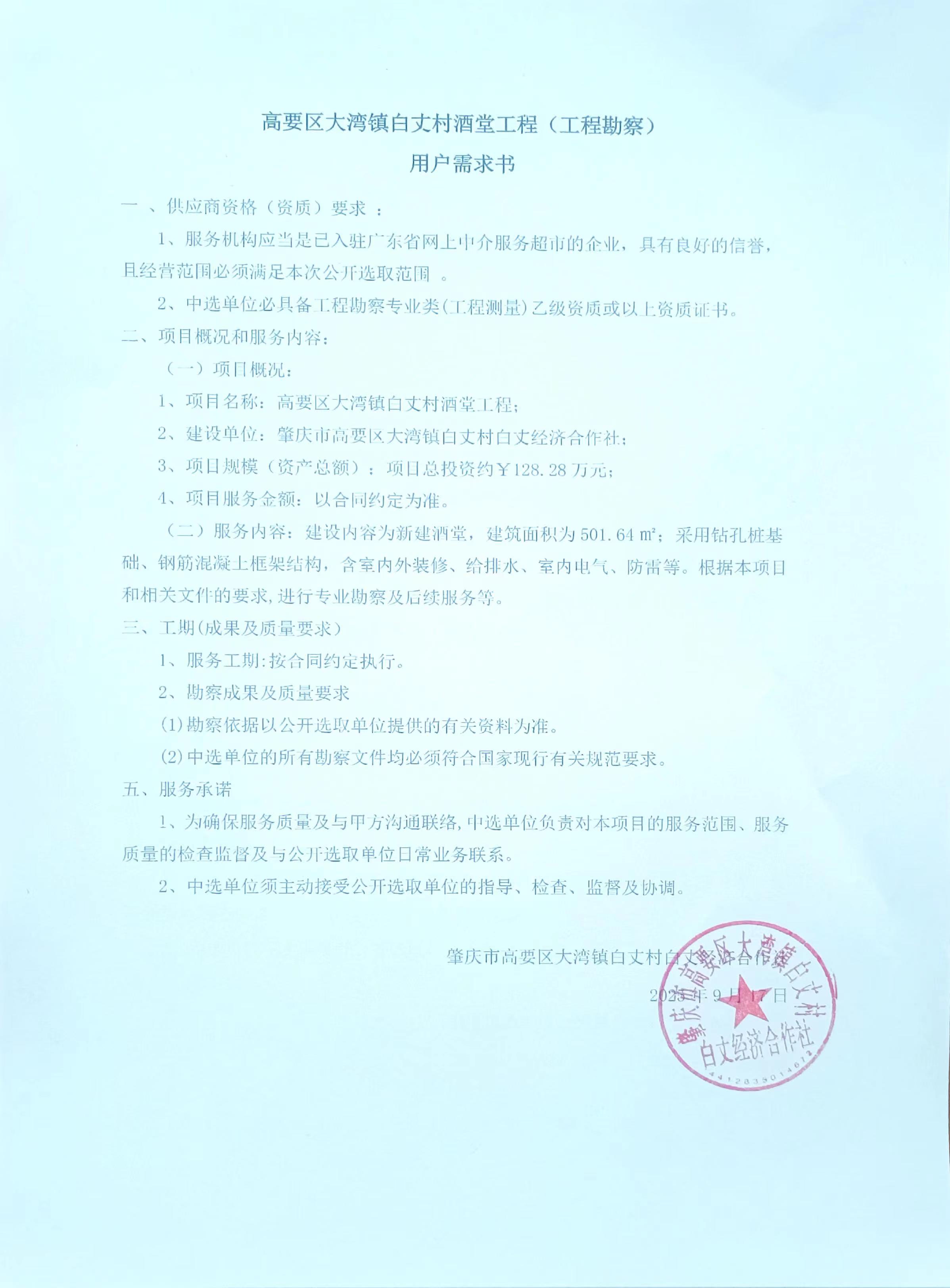 关于为【高要区大湾镇白丈村酒堂工程(工程勘察)】公开选取【工程勘察】机构的公告