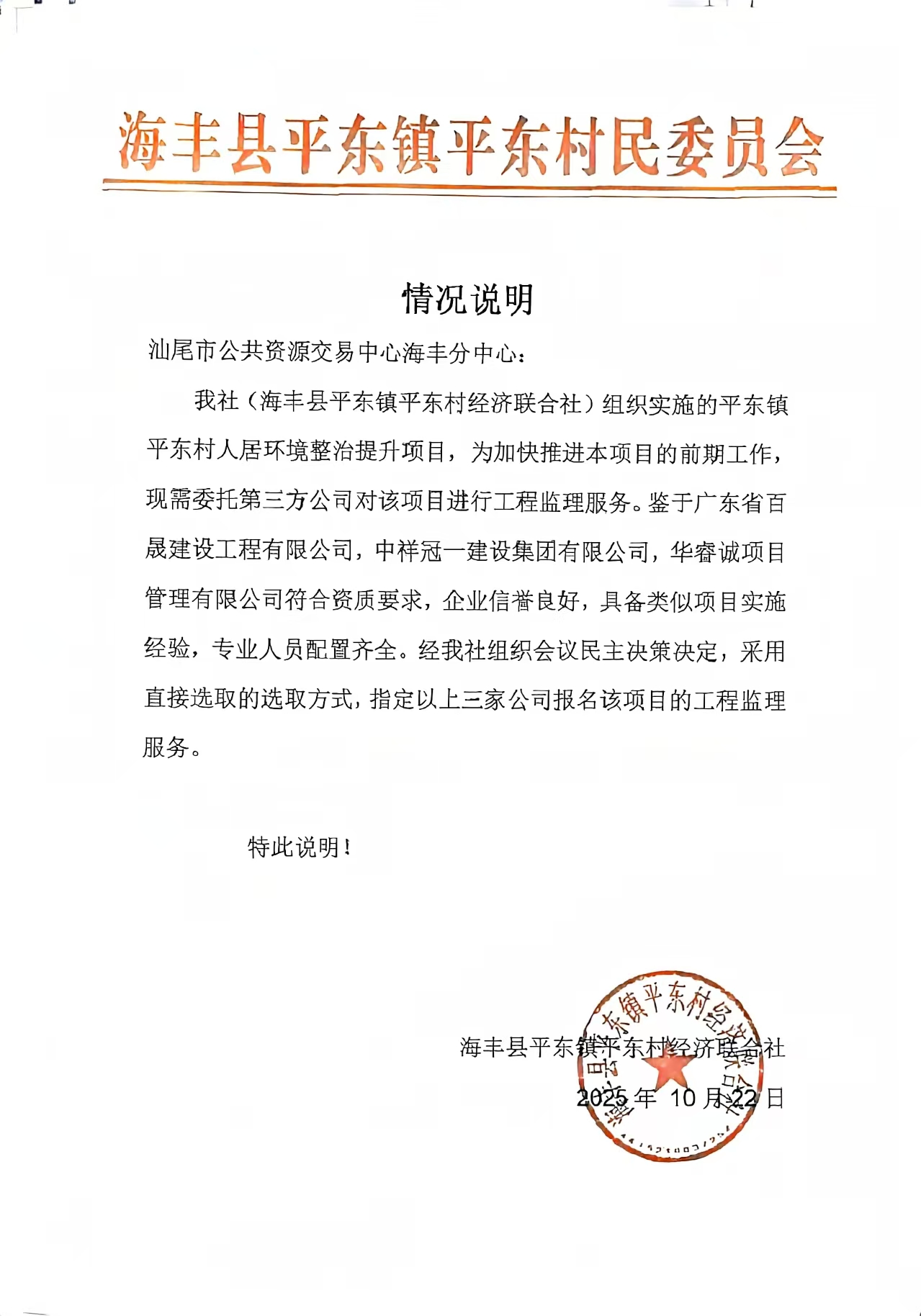 关于为【平东镇平东村人居环境整治提升项目工程监理服务】公开选取【工程监理】机构的公告