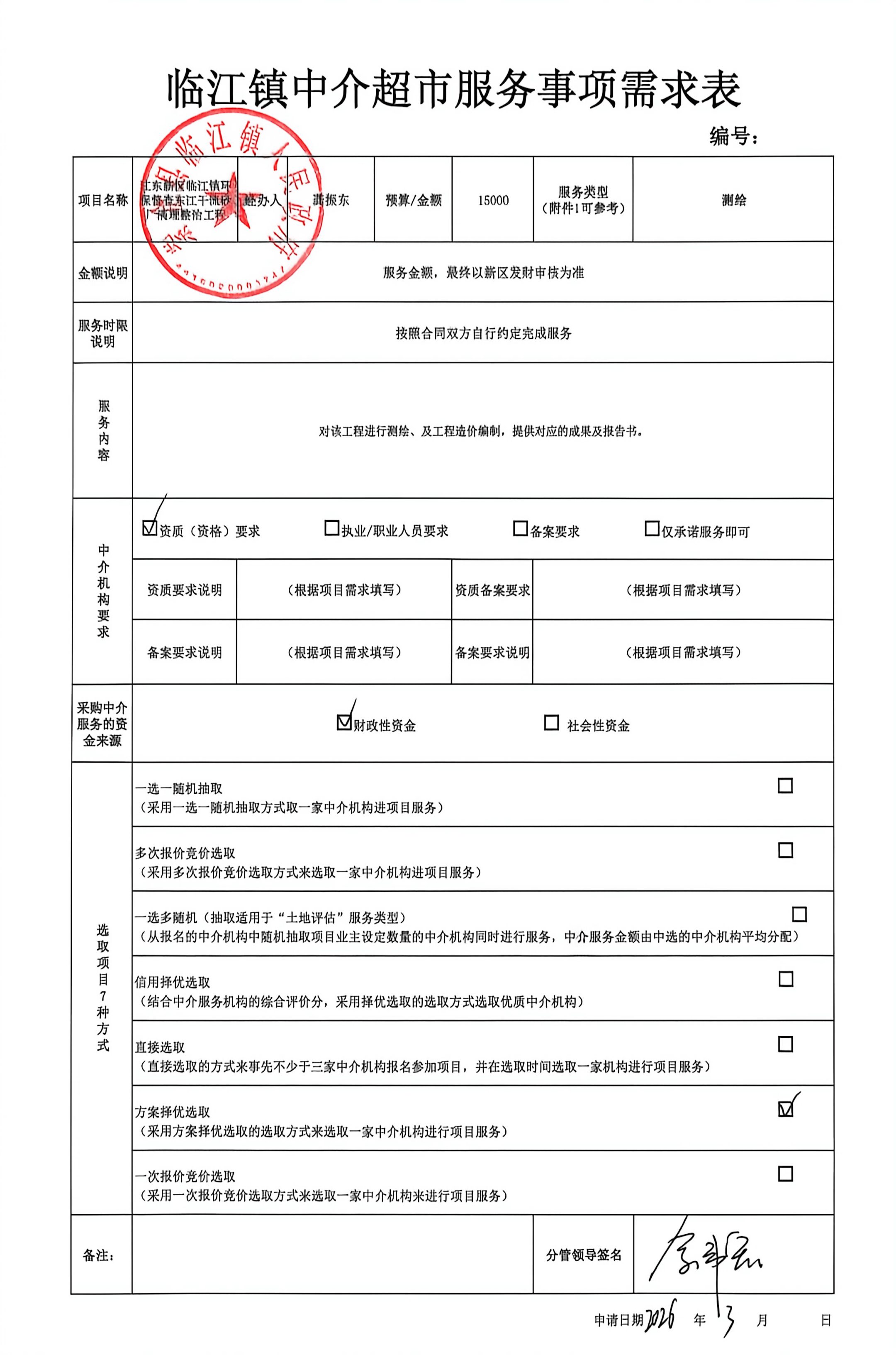 2026-04-03 09:00 ,在广东省网上中介服务超市为紫金县临江镇人民政府 公开选取测绘中介服务机构,现将相关事项公告如下: