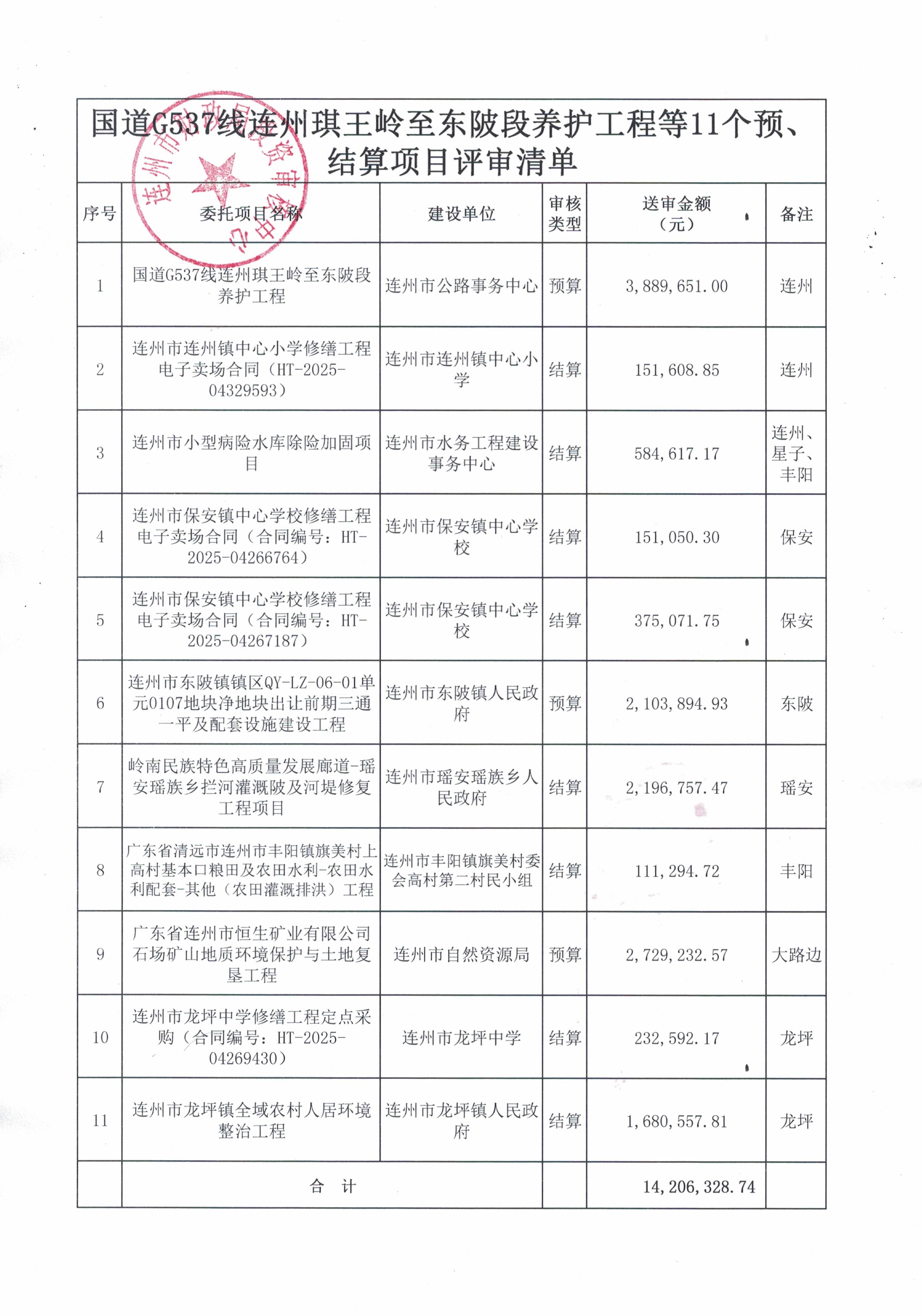 国道G537线连州琪王岭至东陂段养护工程等11个预、结算项目评审