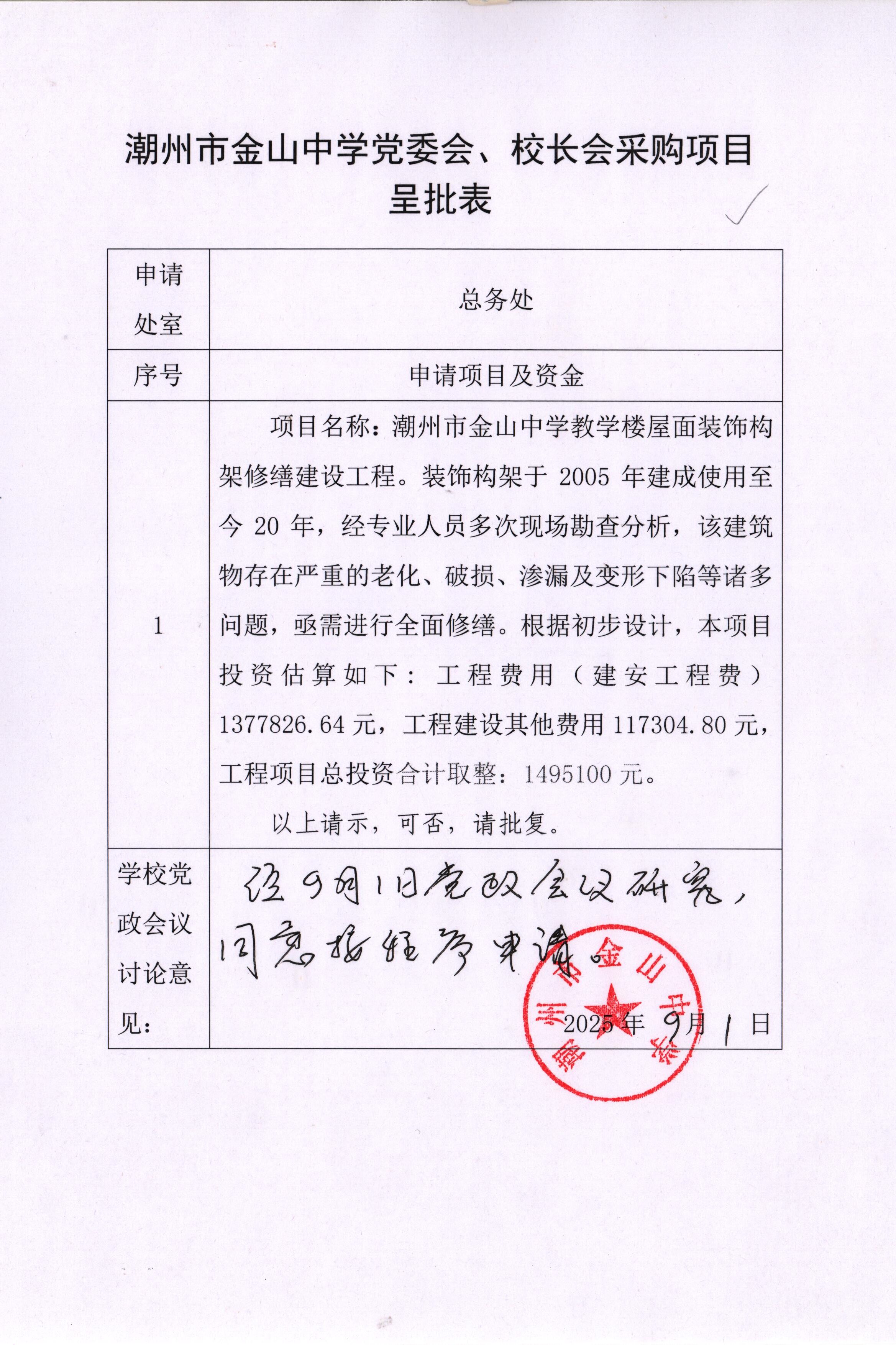 关于为【潮州市金山中学教学楼屋面装饰构架修缮建设工程设计图纸审图】公开选取【房屋建筑和市政基础设施工程施工图设计文件审查】机构的公告
