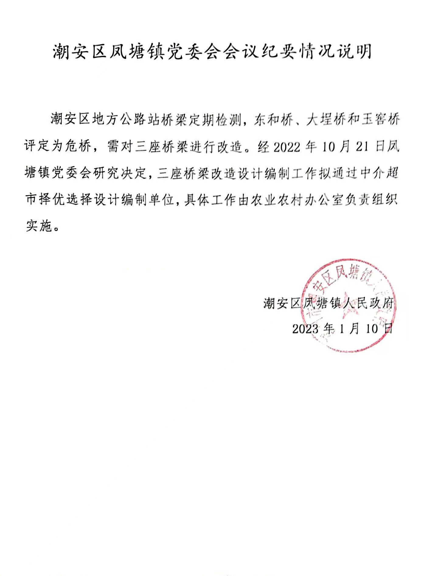关于为【潮安区凤塘镇村道C427线东和桥危旧桥梁改造工程——预算编制】公开选取【工程造价咨询】机构的公告