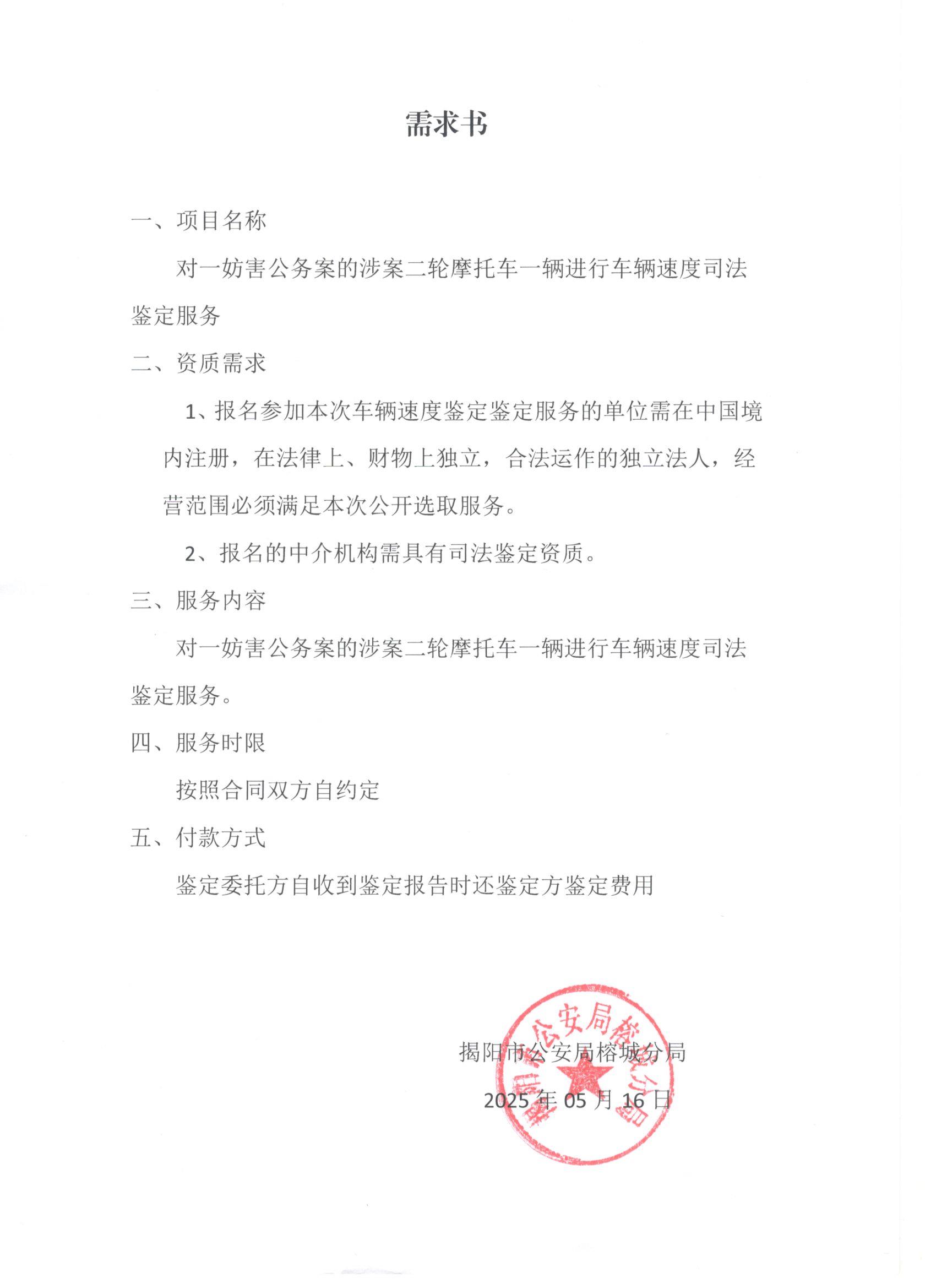 2025-05-22 17:30 ,在广东省网上中介服务超市为揭阳市公安局榕城分局 公开选取司法鉴定中介服务机构,现将相关事项公告如下: