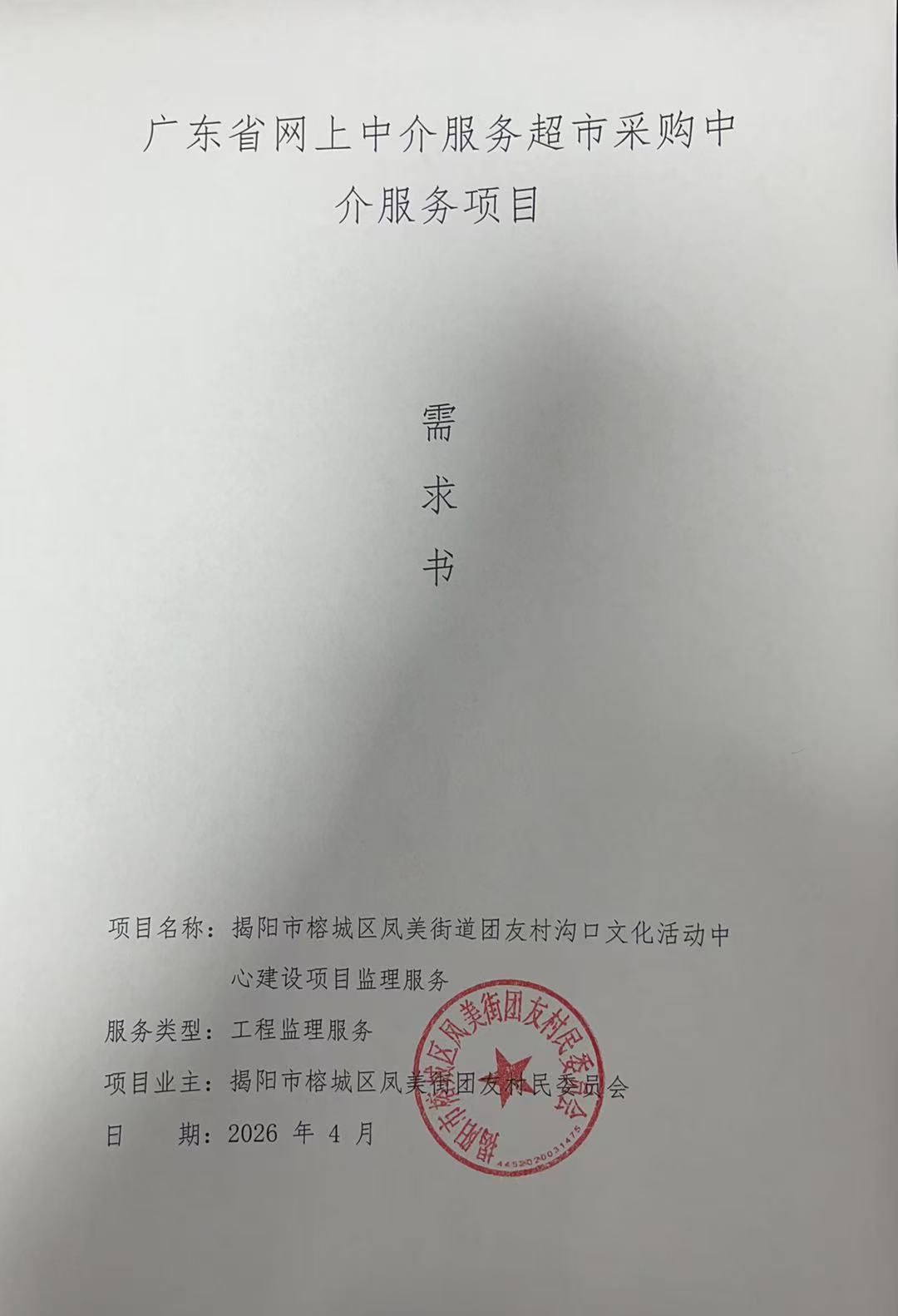 关于为【揭阳市榕城区凤美街道团友村沟口文化活动中心建设项目监理服务】公开选取【工程监理】机构的公告