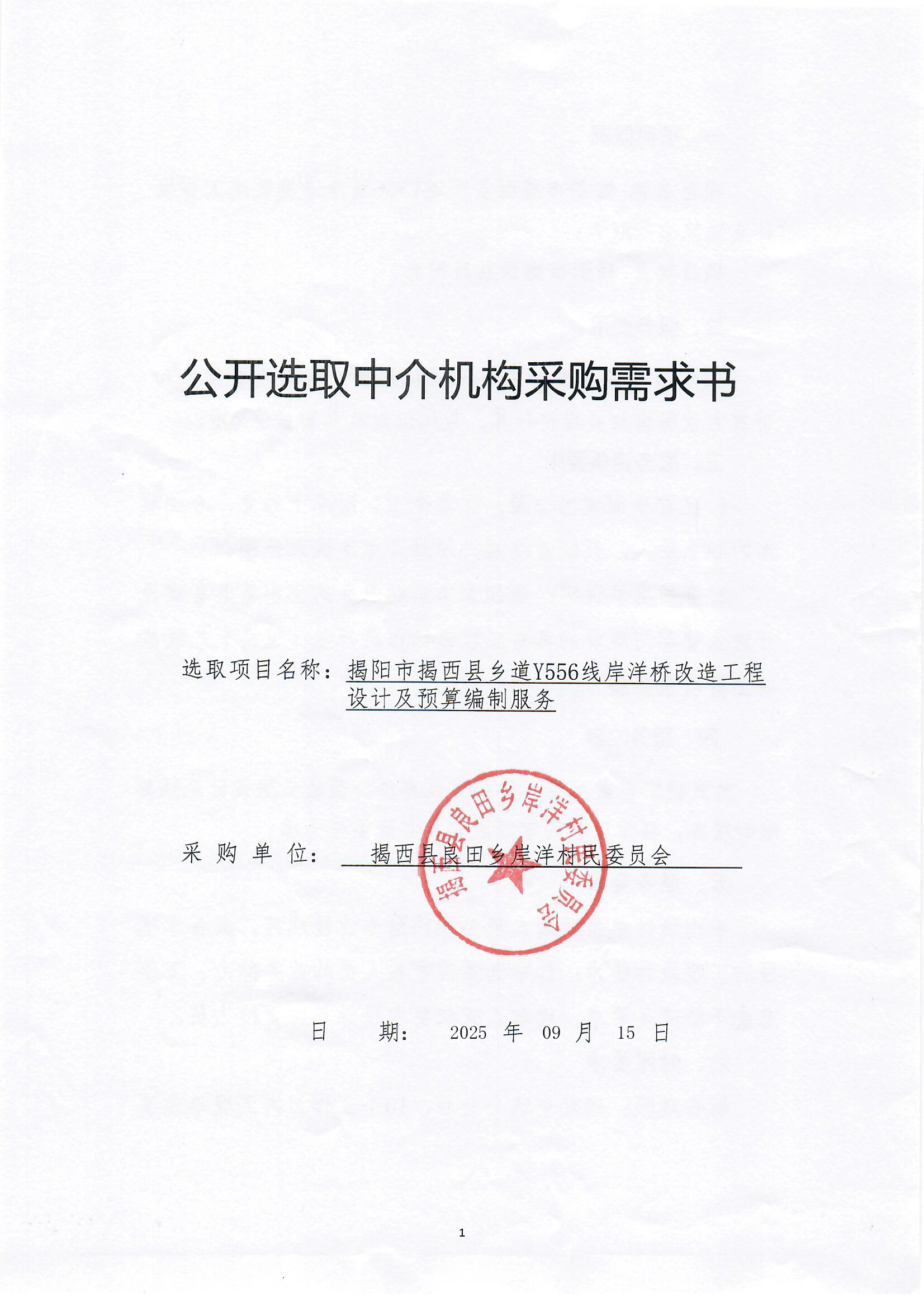 关于为【揭阳市揭西县乡道Y556线岸洋桥改造工程设计及预算编制服务】公开选取【工程设计,工程造价咨询】机构的公告