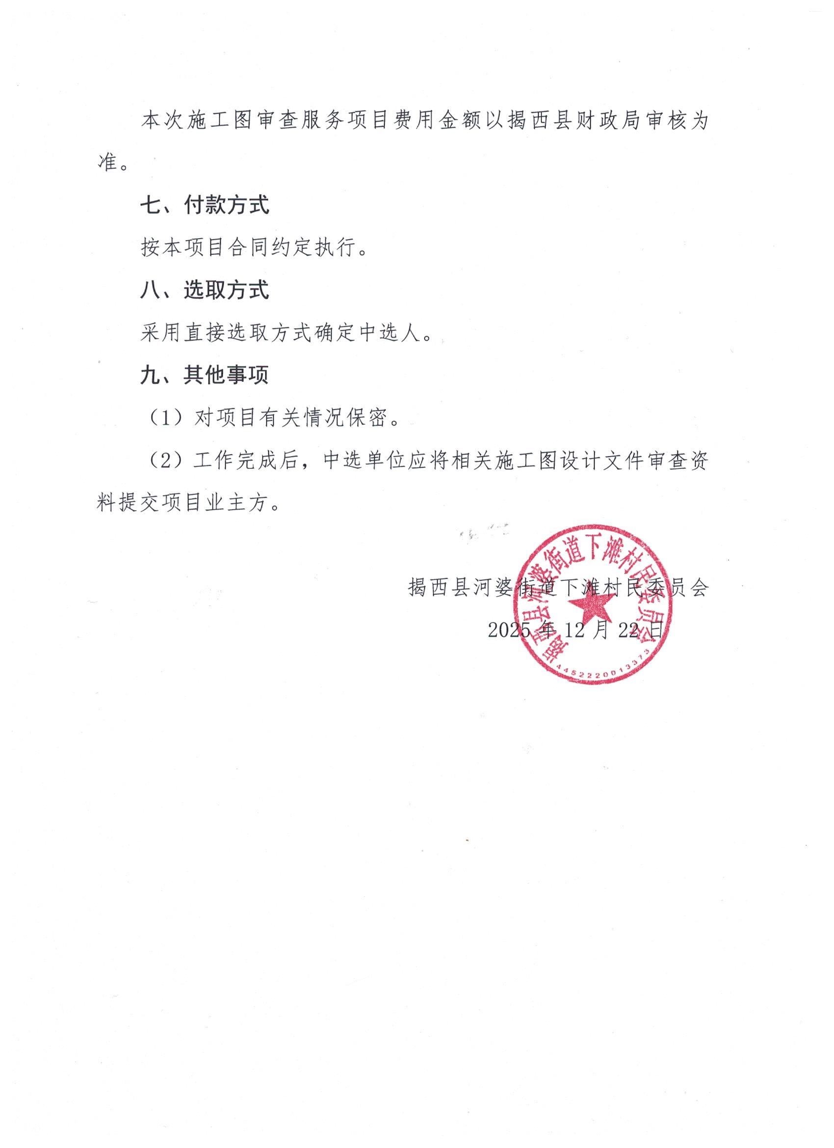 关于为【2025年河婆街道下滩村光伏发电项目施工图设计文件审查服务】公开选取【房屋建筑和市政基础设施工程施工图设计文件审查】机构的公告