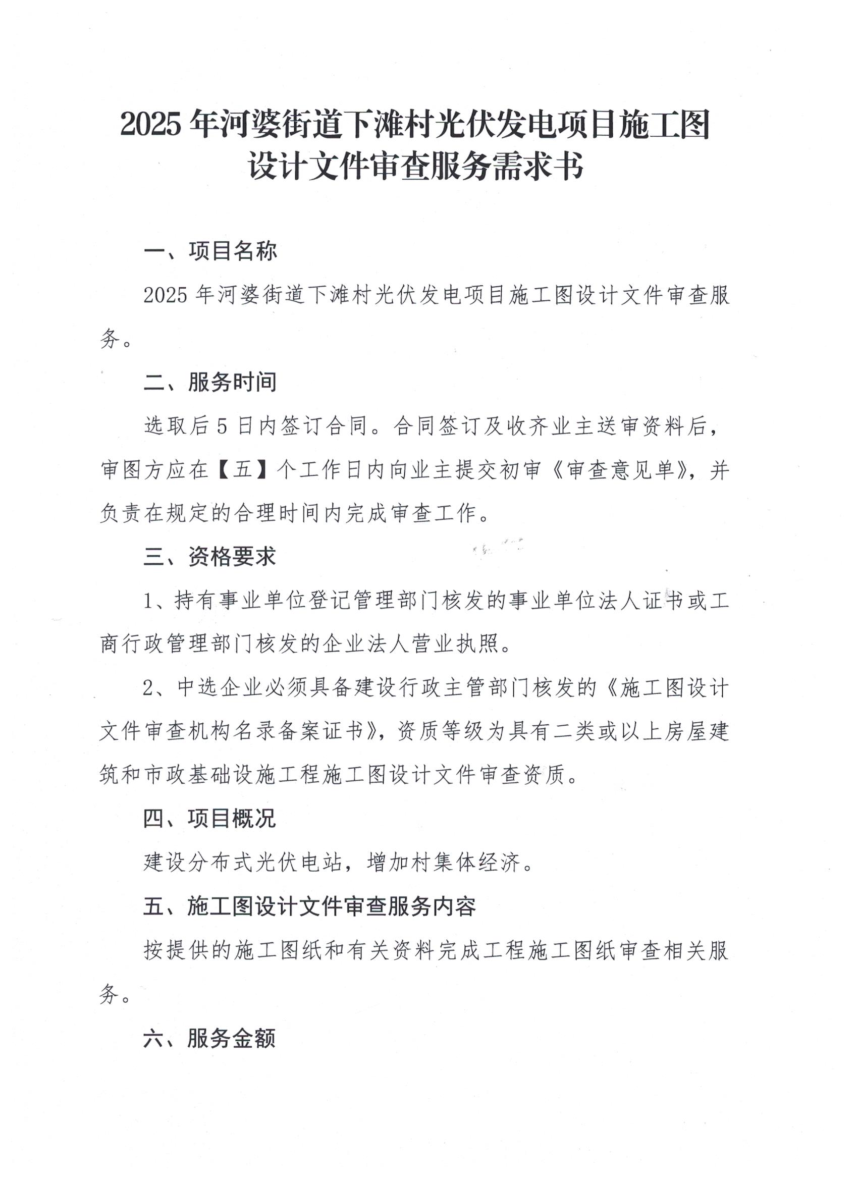 2025年河婆街道下滩村光伏发电项目施工图设计文件审查服务