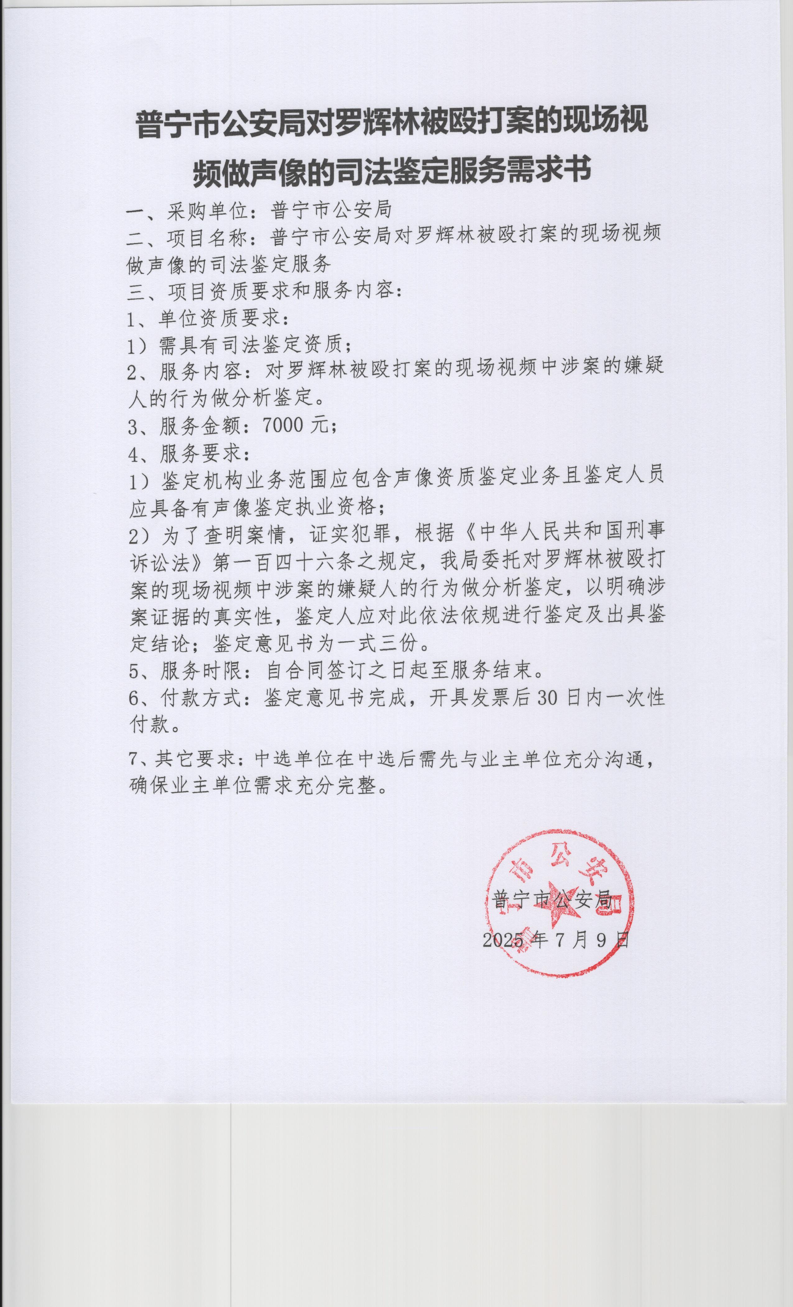 2025-07-25 17:30 ,在广东省网上中介服务超市为普宁市公安局 公开选取司法鉴定中介服务机构,现将相关事项公告如下: