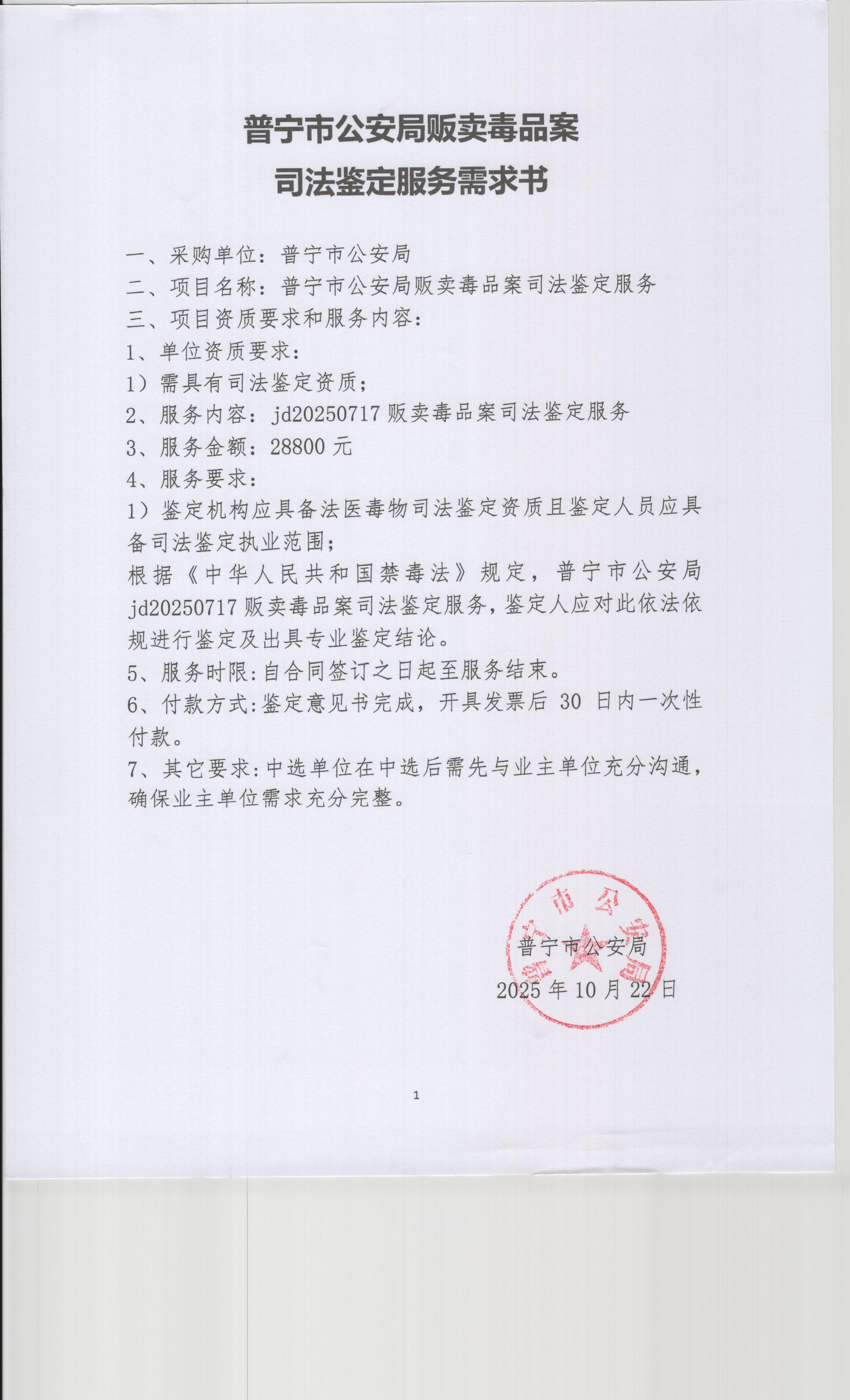 2025-10-28 17:30 ,在广东省网上中介服务超市为普宁市公安局 公开选取司法鉴定中介服务机构,现将相关事项公告如下: