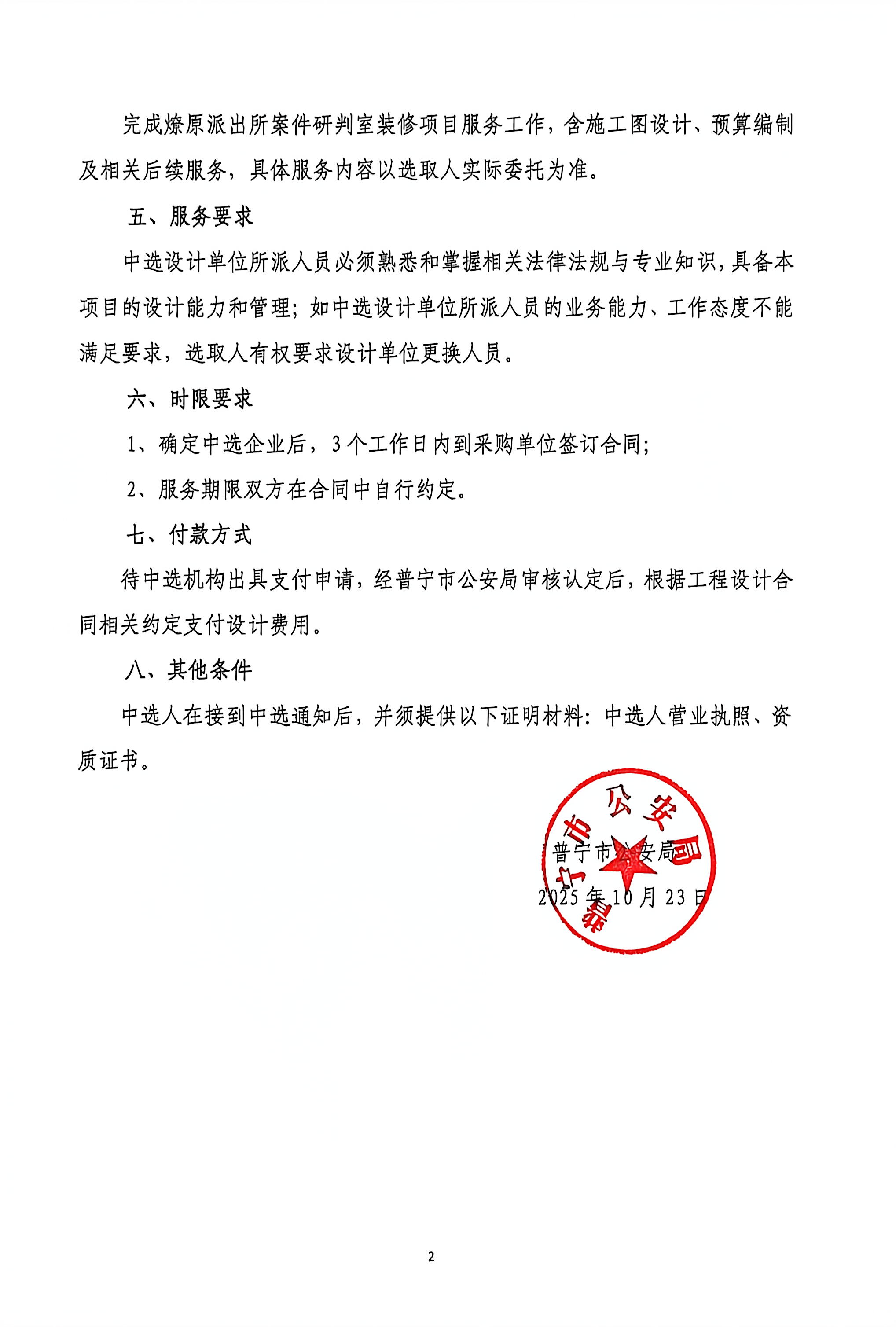 关于为【燎原派出所案件研判室装修项目设计及预算编制 服务】公开选取【工程设计,工程造价咨询】机构的公告