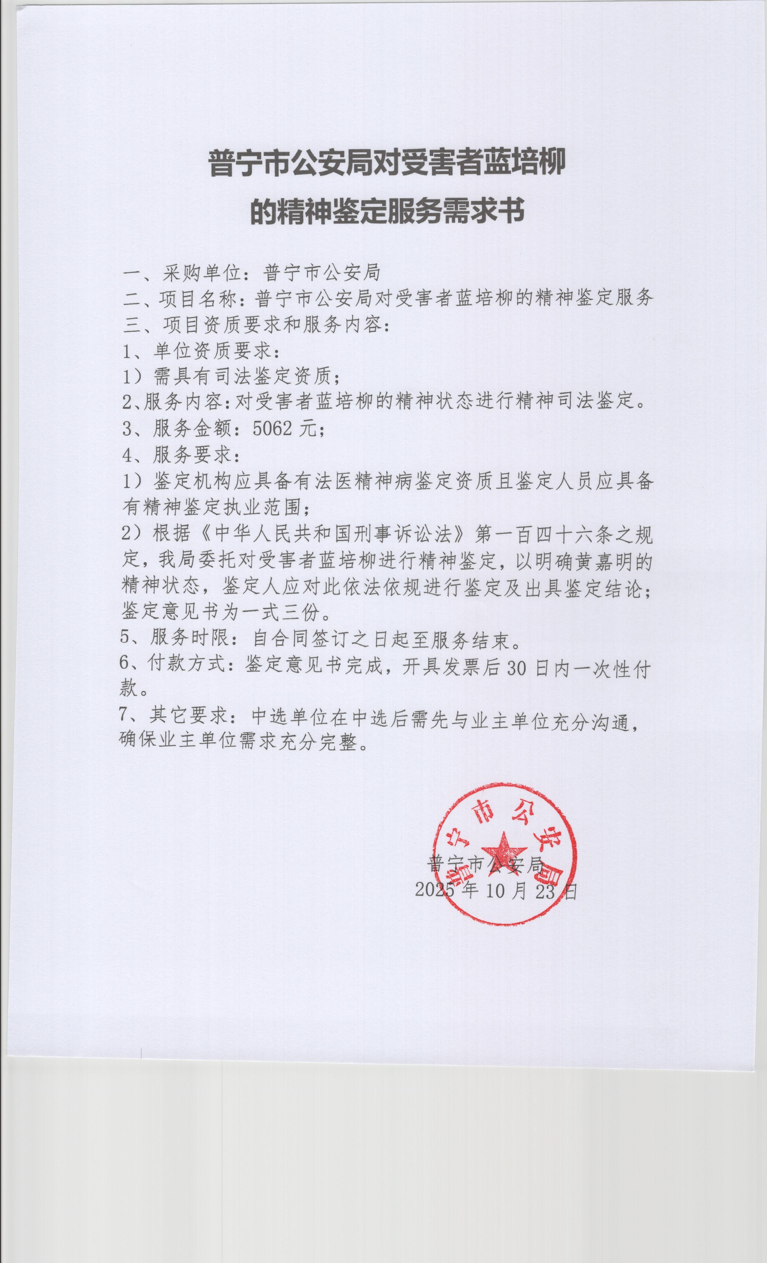2025-11-12 17:30 ,在广东省网上中介服务超市为普宁市公安局 公开选取司法鉴定中介服务机构,现将相关事项公告如下: