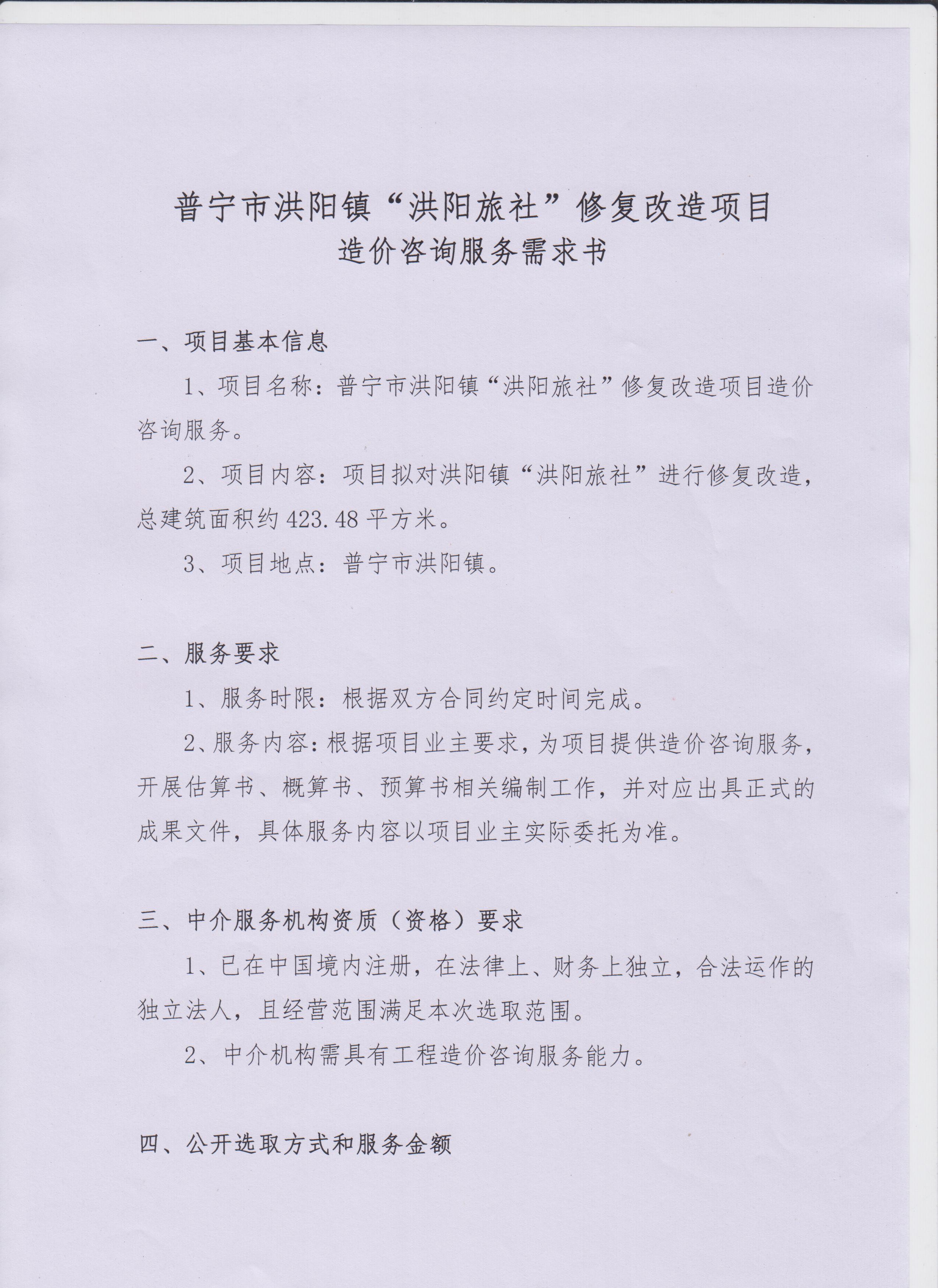 关于为【普宁市洪阳镇“洪阳旅社”修复改造项目造价咨询服务】公开选取【工程造价咨询】机构的公告